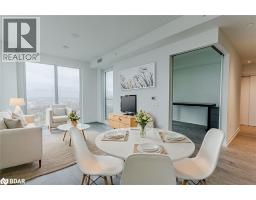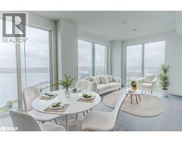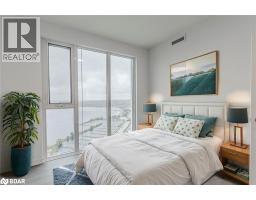 $657.36 MonthlyBRAND-NEW 2-BED PLUS DEN CONDO WITH VIEWS OF KEMPENFELT BAY, OWNED PARKING & LOCKER! Rise above it all in this brand-new, never-occupied condo on the 29th floor of 39 Mary Street, offering over 1,000 square feet of bright, modern living with breathtaking views at every turn. Nearly every room is wrapped in floor-to-ceiling windows, filling the home with natural light and capturing panoramic views of Kempenfelt Bay, the marina, the city skyline, and the iconic Spirit Catcher. The sleek kitchen showcases built-in appliances, contemporary cabinetry with warm wood accents, under-cabinet lighting, and polished countertops, complementing the open living and dining areas with a sophisticated, cohesive design. The spacious primary bedroom features a walk-in closet and a modern 4-piece ensuite with a glass-walled walk-in shower and dual vanity, joined by a bright second bedroom and a flexible den ideal for work or a creative space. Everyday convenience shines with in-suite laundry, an owned garage parking space, and a storage locker. Perfectly positioned in Barrie’s vibrant downtown, steps from the waterfront, Heritage Park, trails, restaurants, cafes, shops, and transit, this exceptional residence also grants access to resort-inspired amenities including an infinity pool, fitness centre, fire-pit and BBQ area, business lounge, and elegant indoor and outdoor dining spaces. Modern design, panoramic views, and a vibrant downtown address, this is elevated living in Barrie! (id:50886)