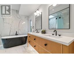 Discover elevated living in this remarkable 3-bedroom, 5-bath semi-detached home, masterfully built by the prestigious Easton Homes and perfectly located in Port Credit. Designed with a focus on comfort and style, this residence offers a seamless blend of modern design and everyday functionality. The inviting main level features bright, open spaces with refined finishes, hardwood flooring, and custom details throughout. The contemporary kitchen stands out with sleek quartz countertops, premium appliances, and an oversized island - a perfect setting for both entertaining and casual family meals. Upstairs, natural sunlight radiates through the multiple hallway skylights and each bedroom comes with its own private ensuite, ensuring personal comfort and convenience. The primary suite is a true sanctuary, complete with a spa-inspired bathroom and an elegant walk-through closet that adds a touch of indulgence to daily living. The finished basement enhances the home's versatility, featuring a stylish bar area, a dedicated gym, and plenty of room for recreation or relaxation. Outside, the landscaped fully fenced backyard provides a private retreat, ideal for summer gatherings or quiet evenings outdoors. Situated in the heart of Port Credit, this home places you moments away from the GO station, top-tier schools, scenic parks, vibrant dining, and the waterfront. Offering both sophistication and practicality, it's the perfect place to experience luxurious living in one of Mississauga's most desirable neighbourhoods. (id:50886)