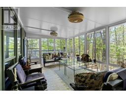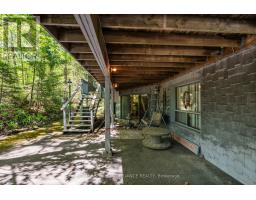 If you're looking for a unique 4-season custom home in a wonderful waterfront community, look no further! This is your opportunity to enjoy the perks of waterfront living without the expense and maintenance that comes with it! Adjacent to Shadow Lake, this 1200 sq/ft raised bungalow is just a 10min walk to the public beach, boat launch, and the quaint Hamlet of Norland. Proudly built and designed by the current owners, this home exudes craftsmanship. From the hardwood parquet flooring to the tongue and groove ceilings, meticulous care went into building their forever home. Purposeful in its design, the living space is an open concept hexagon, with vaulted ceilings, a thoughtful kitchen, and multiple walkouts to the wraparound verandah. The primary suite features a walk-in closet, 3-piece bath and walkout to its own large sunroom. The second bedroom includes a murphy bed, built-in shelving and desk, and is located across the hall from a 3-piece bath. Enjoy the convenience of main floor laundry and an additional newly built oversized sunroom. The lower level walkout is beautifully set up for in-law living or a home based business. Currently used for creative endeavors, this open concept space features built-in shelving, dry bar area, and office. A completely separate workshop completes this level. Outside, the grounds are magical - walking paths, archways, tranquil sitting areas and miniature sculptures hidden amongst the trees. This is more than just a property - it's a sanctuary, where life slows down and memories are made. Welcome home! (id:50886)
