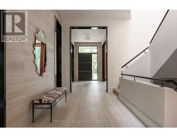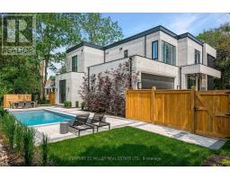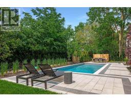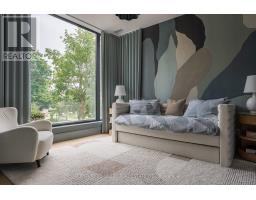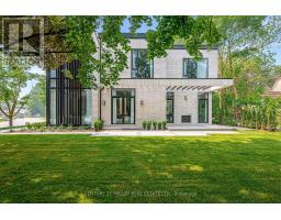 Welcome to 392 Maple Grove Drive, where modern architecture + intentional design blend bold layers + elevated finishes to create a home that is as thoughtfully imagined as it is beautifully executed. Where natural light moves through rooms like it was meant to. And where every finish, every texture, every detail has been chosen not just to impress but to feel right. With 7,390 total square feet, 5 bedrooms + 6 bathrooms, this fully furnished masterpiece is the result of a powerhouse creative trio: architect Richard Wengle, builder PCM Now + interior design by Brian Gluckstein. The exterior is quietly striking Belgian-inspired brick + elongated stone in soft, tonal shades, anchored by a private courtyard that opens to an elegant inground pool. Inside, the tone is set by soaring ceilings, expansive glazing, soft sand-coloured stone finishes + a curved sculptural plaster staircase as the focal point. The main floor unfolds in a series of moments: the colour-drenched dining room in deep rust, casual + bold. The soaring living room with double-height corner windows + a slatted oak wall above a two-sided fireplace. The chefs kitchen is sleek but grounded; concealed appliances, stone surfaces + a sculptural muted green island with fluted detailing. It opens to a relaxed breakfast area + family room, where herringbone white oak floors, expansive glazing + an indoor-outdoor fireplace invite connection + calm. Upstairs, the primary suite is tucked into its own wing with soft blue tones, a boutique-style dressing room + spa-like ensuite. Additional bedrooms are distinct + personal, each with curated finishes. The lower level features a full guest suite, recreation room, gym + secondary laundry with dog wash practical, elevated + beautifully done. A home so fine-tuned, it creates presence. Desirable school district, close to shopping + commuter routes. (id:50886)