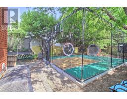 Discover an impeccably maintained four-bedroom detached residence tucked away on a serene cul-de-sac in the sought-after Hill Park subdivision of Hamilton. The heart of the home underwent a professional renovation in fall 2022, featuring sleek stone countertops, a coordinating backsplash, and brand-new stainless steel appliances. Elegant laminate flooring graces the main level, while rich hardwood flows throughout the second floor, illuminating four generously sized bedrooms. Recent updates provide peace of mind and year-round comfort: a new roof installed in July 2025 and a high-efficiency furnace and air-conditioning system added in fall 2021. The lower level is thoughtfully designed to accommodate an exercise area, convenient laundry room, cold storage space, and a utility room offering ample shelving and organizational options. Step outside to discover a backyard oasis equipped with a professionally built multi-sports court ideal for those basketball, soccer, pickleball, lacrosse, or ball hockey enthusiast a trampoline and two storage sheds. This exceptional property combines modern upgrades, functional living spaces, and premium outdoor amenities to deliver your ultimate family home. (id:50886)