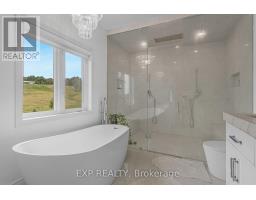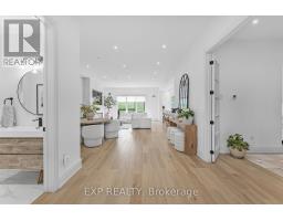 This exceptional residence combines timeless elegance with modern luxury, offering 4 bedrooms, 3 bathrooms and a spacious layout ideal for relaxed family living and stylish entertaining. Step inside the impressive foyer, where oversized Carrara Mare porcelain tiles, detailed wainscoting, and a sparkling three-tier crystal chandelier. Expansive ceilings, 8-foot interior doors, and wide-plank engineered oak flooring elevate the sense of openness and flow. Double French doors reveal a flexible space ideal for a private office, playroom, or formal dining. At the center of the home, the gourmet kitchen is a true showpiece featuring solid wood cabinetry, full-slab Italian porcelain countertops, and an eye-catching backsplash. The oversized 8' x 5' island and discreet walk-in pantry seamlessly combine beauty and functionality. The adjoining open-concept living area is bathed in natural light, complete with a sleek electric fireplace and built-in surround sound for an inviting atmosphere. Upstairs, the luxurious primary suite offers a spa-inspired 5-piece ensuite with dual vanities, his-and-hers shower heads, and a Carimali waterfall feature surrounded by stunning Bianco Stone porcelain. Two additional bedrooms with walk-in closets, plus convenient bedroom-level laundry, ensure comfort and practicality. The backyard is designed for effortless entertaining with stylish stonework and complete privacy with no direct neighbours. Perfectly situated just minutes from Niagara's renowned wineries, scenic walking trails, and picturesque parks, this home delivers the ultimate in refined living. (id:50886)