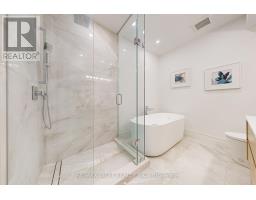 $354.10 MonthlyWelcome to 2639 R Dundas St Unit 4, Located in the heart of the Junction and tucked just behind Dundas on a small private lot with only 4 units. You will find this newly built luxury custom End Unit townhouse with just over 2600 sq ft plus a 356 sq ft rooftop deck with skyline/CN tower views, a private backyard and a glass balcony off the kitchen to enjoy the outdoors. Refined craftsmanship and superior high-end finishes throughout sure to impress, featuring an open floor plan, sleek custom made 15 foot kitchen with 9x3 ft quartz island waterfall feature , Riobel touchless faucet, floor to ceiling windows. Airy bright family room with large window and media wall, fireplace and open shelves. Master bedroom retreat with floor to ceiling windows, custom accent wall, 12x5 walk-in closet with custom built in cabinets, Spa like bath features deep whirlpool tub, glass shower with waterfall, touchless Riobel faucets, smart touchless toilet/bidet, and heated floors. Bedrooms 2&3 both have custom double built in closets and share a 4-pc bath. Glass railings on all levels, open staircase, 12 feet ceilings on main, 10 feet on second, and 9 feet on third. Skylight over staircase brings natural light to all levels. Welcoming entrance foyer with 6x4 ceramic tiles heated floors and direct access to a 220 sq foot garage, step down ground level impressive recreation room with custom accent wall, 12 foot ceilings, 3pc bath and direct access to backyard. This room would also suit a home office, gym or nanny suite. These are just some of the exceptional features of this home, full list on feature sheet. Prime Junction Located within a short walk to Bloor subway and GO Train line to Downtown or Airport, and just minutes to Roncesvalles Village, High Park, and Bloor West Village shops, restaurants and great school district. Truly unique opportunity and great value that's almost impossible to find for a newly built home of this size in a prime Toronto west location. (id:50886)