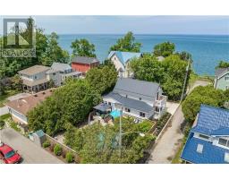 The whole package is right here! Huge fenced yard, stunning curb appeal and beautifully updated inside and out, perfectly situated within sought after Grimsby Beach District, this adorable gem is situated on the second lot (oversized and legally described as Lot 190-193) from the shores of Lake Ontario and boasts lake views from the Living Room, Primary Bedroom plus upper balcony, be sure to reference lake view photos here! Gorgeous extensive professional landscaping, very private fenced yard with decking, gazebo, and above ground pool, make this home a complete entertainer's splash splash paradise! Charming gingerbread trim, new metal roof, house front and back soffit/facia/eavestrough with gutter guards, two full baths, sparkling kitchen overlooks Dining/Living and Sunroom, and most important of all the basement has been excavated under permit/Architect drawings with new concrete, insulated, heated and central air. (Central air July 2025) Lots of living space here, in addition to the spacious Living/Dining Room is a main level bedroom with new loft door, and a sun filled Family Room which overlooks gazebo and huge private fenced backyard. The detached 321 sf Carriage Shed measuring 19.7'x10.7' could be a fun man cave or she shed, perfect hideaway, reflection space, or perhaps finish for a private home office! The Painted Ladies of Grimsby Beach, this particular classy lady has been updated in fresh modern decor while still maintaining the vintage warmth. Known as the "Woodhayes" once belonged to the Lister family 1888-1917. Exceptional curb appeal here, charming front porch plus upper balcony with lake views, huge lot and quite an eye catching masterpiece as soon as you turn onto this tiny street boasting only 5 residences in total! (id:50886)