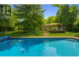 Welcome to your own private backyard oasis in one of Guelph's most peaceful cul-de-sacs! Backing onto greenspace for true privacy this spectacular 4-bdrm home offers 20 X 40 heated inground pool & outdoor retreat designed for relaxation & entertaining. Step inside & you'll immediately notice the bright inviting layout. Living room W/luxury vinyl floors & large picture window that fills space W/natural light. Dining room W/beautiful views of backyard make every meal feel special. Kitchen W/high-end S/S appliances, lots of storage & prep space. Window above sink overlooks mature trees for peaceful backdrop. A few steps down is family room anchored by gas fireplace & sliding doors that walk out to backyard retreat. Upstairs the primary bdrm offers double his-and-hers closets & modern ensuite W/glass W/I shower. 3 add'l bdrms provide generous closet space & natural light complemented by updated 4pc bath W/subway-tile shower/tub. Professionally finished basement adds more versatility W/large rec area, workout zone & storage. Backyard is truly the star of the show! Enjoy large deck W/pergola, interlock patio, secondary deck W/gazebo & mature landscaping surrounding heated inground pool. Brand-new pool house & recently serviced mechanicals provide peace of mind. Beyond the fenced pool area, a bonus greenspace offers endless possibilities-room for volleyball court, play area or future accessory dwelling unit (ADU) for extended family or rental income. Updates include: newer windows, newer electrical panel, furnace & AC (approx. 10yrs), roof (approx. 12yrs), updated bathrooms, modern light fixtures & upgraded flooring. With double garage & driveway parking is a breeze. Location is ideal for families-backing onto Windsor Park, steps to Waverley Dr PS & short walk to Speedvale Centre (grocery, LCBO & more). Nearby trails & Guelph Lake offer countless ways to stay active & connected to nature. Home offers perfect blend of lifestyle, comfort & long-term value-truly a rare find! (id:50886)