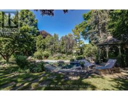 Welcome to 4 Cheltenham Court, a completely reimagined and redesigned executive home in coveted Peel Village. Fronting on a mature tree-lined cul-de-sac road, this home offers unparalleled privacy. Entertain family and guests in the breathtaking award-winning garden. Indulge the senses in the saltwater pool, sauna and hot tub while you sound bathe by the waterfall. Tranquil and serene, yet close to the city's finest amenities. Thoughtfully renovated with high-end finishes, cathedral ceilings, and custom millwork, this home is truly a unique and rare offering. The grand foyer, showcases the beautiful curved staircase illuminated by a stunning designer hanging light fixture. Through double french doors, is the generously scaled living room with luxurious hard wood flooring, large windows, ample natural light and wood burning fireplace. Through double sliding doors is the dining room with walk-out to the private award-winning garden. The custom designed Poggenpohl chef's kitchen with all the modern amenities, includes premium appliances, sliding pantry, secret kickboard drawers and hidden ladder. The kitchen, the large breakfast and study area all overlook the tranquil garden. Complimenting this floor is a powder room, mudroom and custom oak office/library. The breathtaking garden with lush landscaping, bespoke plantings and mature trees offers exceptional privacy. Upstairs, the primary bedroom boasts cathedral ceiling detail, a walk-in closet and large spa-inspired ensuite bathroom, with Jacuzzi tub and walk-out to terrace overlooking garden. The second bedroom features seating area, cathedral ceiling, ensuite bathroom and walk-out to terrace overlooking front garden. The third and fourth bedrooms also have ensuite bathroom access, with the third walk-out to terrace, overlooking back garden. (id:50886)