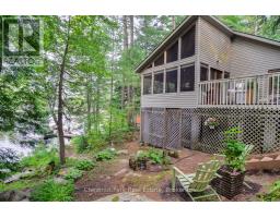 New Price$$. Enjoy the undeniable beauty of the Fall colour Season in Muskoka at this fabulous, hidden gem spot on Beautiful Kahshe Lake. Enjoyed by the same family for over 30 years, this Boyd island property was chosen for it's picturesque setting and the sublime seclusion that is enjoyed here. Tucked in a quiet bay away from boat traffic and big winds, the property offers shallow entry at the shoreline and deep water for swimming off the dock. This tranquil area is the perfect spot to enjoy a paddle board or kayak meditation as you take in the scenery and wildlife. The property is well maintained so you can just enjoy quality time with family and friends.There are several lounging spots amongst the perennial gardens or play bola off the bbq deck that is perfect for entertaining. The lower deck offers a hot tub for cooler days too. Take advantage of the upgraded kitchen and bathroom as well as a newer deck with glass railings to maximize the view. You will enjoy cooking in this well designed kitchen with eat in island + bar area. The interior is nicely decorated with creative, cottage flair and comes furnished for your enjoyment. The main living space is very comfortable with ceiling fan + WETT certified wood stove for cooler nights + baseboard heating throughout. You will enjoy the screen porch with high ceilings + fan that keeps the breezes flowing while you relax, dine or take a nap. The 2 bdrms offer comfy queen(primary) and 2 twin beds, separated by closets for privacy. Nicely renovated bathroom with lrg shower, new cabinetry and flooring. A private sleeping bunkie is close by in the rear garden with west & east views of lake. This cottage has previously been enjoyed all season w heated water line + heated mechanical rm. The time has come for another family to enjoy this special cottage on one of the most picturesque lakes in Muskoka! Located 5 mins from marina. (id:50886)