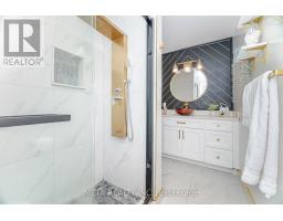 Welcome to 4 Popham - a beautifully renovated modern home in Guelph's family-friendly East End, directly across from Summit Ridge Park. This carpet-free home features an open-concept main floor with hardwood throughout, flowing from the bright living room into a spacious dining area. The newly updated kitchen offers quartz countertops, stainless steel appliances including a gas range, a center island with breakfast bar, and abundant cabinet and pantry space. A stylish 2-piece powder room completes this level. Upstairs, the large primary bedroom includes a walk-in closet and a luxurious ensuite with soaker tub and separate shower. Two additional bedrooms feature hardwood flooring and generous closets. The versatile second-floor family room-currently used as a fourth bedroom-can easily be converted permanently if desired. Convenient second-floor laundry with gas dryer and a full 4-piece bathroom finish this level. The fully finished basement adds valuable living space, featuring a wet bar with rough-in for a full kitchen, a newly finished 3-piece bathroom, and a spacious bedroom with walk-in closet and sound insulation-perfect for guests, an office, or a teen suite. Additional storage is located near the furnace and water softener. The heated, oversized two-car garage provides extended width and depth, and the stamped concrete driveway parks four vehicles & an oversized garage. The backyard is a true oasis with a heated saltwater POOL featuring a waterfall, LED color-changing lights, and multiple depths. Glass railings, poured concrete, and perennial landscaping create a beautiful, low-maintenance retreat, while still leaving space for a sandpit, play structure, and green area. Major updates include: Master Bathroom (2022) Main Washroom (2022) Powder Room (2022) Roof (2018), Furnace (2016), A/C (2019), Saltwater Pool (2019), Added Waffle Ceilings & Wainscoting. Brand New Fridge added! (id:50886)