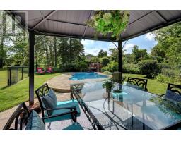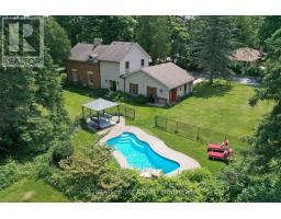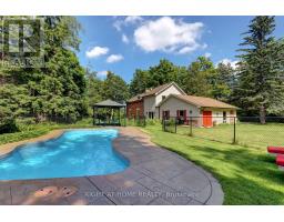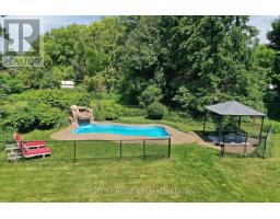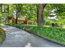 Discover the perfect blend of historic charm modern comfort with this unique 1.5-storey home, set on over 1.2 acres of private, tree-lined property in the heart of Stewarttown allowing up to 3 dwelling units on the property. Boasting a distinctive brick façade, this 3-bed, 2-bath home features character-rich details including two cozy fireplaces, high ceilings, tall baseboards & deep windowsills. The rooms are all generous sized to fit all your furniture, or even some of theirs! The eat-in kitchen has a gas range, granite counter tops, beautiful glass door cupboards, built-in appliances and a tall pantry for extra storage. Laundry is located on the second floor. This room can be easily converted to a 4th bedroom or even a Kitchen as it once was. This home is equipped with a brand new high efficiency boiler for heat and endless on demand water, plus, an Air Handler for both heat and air conditioning giving options for your comfort.Step outside to your backyard oasis complete with a heated saltwater pool, cascading waterfall, and a beautiful gazebo ideal for relaxing with just the family or entertaining a group of friends.Surrounded by mature trees, the setting is park-like, peaceful and private. For your parking needs, you have a 2.5 car garage and driveway spacefor easily 8+ vehicles. Halton Hills zoning allows for a 1500 sqft detached Accessory Dwelling Unit (ADU), plus an accessory apartment in the main building or addition to the main building.Enjoy the convenience of in-town living with walking access to the golf course, sports park, downtown shops, and restaurants. A rare offering that combines timeless architecture with unbeatable location and lifestyle. Don't let this properties Heritage designation scare you, IT'S FOR THE BRICK ONLY, with this you can take advantage of a 20% discount on your property taxes as well as get $3,000/year for exterior maintenance. Interior renovations and current addition are not subject to designation (id:50886)