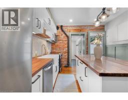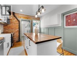 From the moment you step through the front door of 40 Emerald Street North, you’re greeted by timeless elegance and modern comfort in perfect harmony. The spacious foyer welcomes you with a full closet, solid wood Victorian doors adorned with vintage hardware, and recently refinished original pine floors that flow throughout the home. High ceilings crowned with ornate medallions, lofty baseboards, and exposed brick create a warm, historic backdrop. The kitchen is a showpiece. Bright white cabinetry, stainless steel appliances, polished wood island, farmer’s sink, herringbone backsplash, wainscoting, and a striking exposed brick wall blend beautifully with the home’s century-old soul. Spacious principal rooms and tall windows fill the main level with light. Convenient powder room finishes the main floor. Wood stairs lead you up to three bedrooms, each with original doors, trim, hardware, and floors, along with a modern, sparkling bath. Everywhere you look, the best of old-world craftsmanship and thoughtful updates unite in style. The fully finished basement offers incredible flexibility. A private in-law suite, teenage retreat, or guest space featuring a living area that can double as a bedroom, a sleek 3-piece bath, kitchenette, and direct laundry access. Step outside to a fully fenced backyard, perfect for relaxing or entertaining, and a rare detached garage for parking or storage. Updates incl. all wiring and plumbing (2019), 50 year shingles on main roof (2020), all new windows and limestone sills (2019), furnace (2019), water heater (2020). All of this in a walkable downtown location, just steps to shops, restaurants, parks, and transit. 40 Emerald Street North delivers heritage charm, modern updates, and unbeatable convenience. It’s a real gem in the heart of the city. (id:50886)