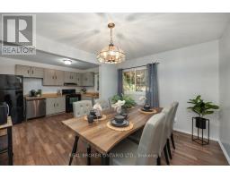 Tucked away on a court location, this charming semi-detached home offers rare privacy with a stunning ravine backdrop. Close to amenities and easy access to Hwy 401. Walk right outside to the nearby walking trails. Step inside to find spacious living areas. Living room features laminate flooring, plenty of natural light and walk-out to the backyard, perfect for enjoying the tranquil surroundings. Good-sized kitchen with laminate flooring overlooks the separate dining room, ideal for hosting gatherings. Three bedrooms upstairs all with ample closet space, including a wall-wall closet in the primary bedroom. The finished basement adds valuable living space with a built-in bar, and lots of built-in shelving in the rec room. Outside, you'll fall in love with the oversized yard surrounded by mature trees - your own private escape with plenty of room to relax or play. (id:50886)