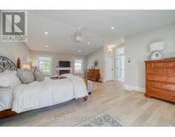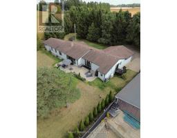 Welcome to a private ranch-style retreat, set on 37.85-42 acres and designed for those who value elegance, comfort, and space. A tree-lined laneway leads to this stunning residence, where contemporary stone and brickwork, a paved entry, and multiple garages (9 in total, including a heated and air-conditioned 2-car attached) set the tone for sophistication. Inside, the open-concept layout pairs luxury with functionality. The chefs kitchen features custom cabinetry, granite counters, and premium stainless appliances, seamlessly flowing to the dining area and stamped concrete patio, perfect for entertaining. A granite fireplace with WETT-certified insert offers warmth and style.The primary suite is a sanctuary with vaulted ceilings, a gas fireplace, two walk-in closets, a private terrace, and a spa-inspired ensuite with dual vanities, freestanding tub, walk-in shower, and separate bidet room. A spacious in-law suite with its own deck and ensuite offers comfort for extended family or guests.The light-filled lower level features oversized windows, a full bath, and versatile space for a gym, office, or rec room. Solid wood oversized doors and vaulted ceilings add timeless character throughout. Beyond the home, income opportunities abound with rental shop/office space, farmland, solar panels, and a fenced compound. Modern upgrades include on-demand hot water, water treatment system, and a 15kw roof-mounted solar system with off-grid potential.This estate blends luxury living with country serenity, offering space, privacy, income potential and lifestyle all in one just outside of town. (id:50886)