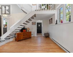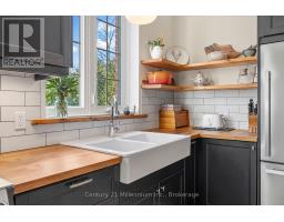 If you've ever dreamed of owning a piece of history, the Kemble Schoolhouse offers just that-rich in character, charm, and timeless appeal. Once the heart of the community where generations of children began their stories, this historic brick schoolhouse has been beautifully restored into a warm, inviting family home. Set on a full acre with sweeping pastoral views that feel straight out of the English countryside, this property blends heritage beauty with modern comfort. Inside, you'll find soaring ceilings, large windows that fill every room with natural light, and a layout that flows effortlessly. The living room features a cozy propane fireplace and original hardwood floors that carry through to the formal dining area and farmhouse-inspired kitchen, complete with butcher block countertops, wood shelving, and a deep apron sink. A half bath and full laundry room complete the main floor. Upstairs, there are four bright bedrooms, each with skylights that create a light and airy feel. A spacious four-piece bath and a lovely landing with a sitting area add thoughtful touches. The primary bedroom offers wainscoting detail and a private balcony overlooking the property and Kemble Rock beyond. Outdoors, enjoy peaceful country living with room to roam, garden, and gather. There's a rustic workshop, original chicken coop in great condition, fruit trees, and a large patio perfect for entertaining or simply soaking in the fresh air. Every corner of this property tells a story-past and present-making it truly one of a kind. (id:50886)