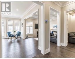 Exquisite 5-Bedroom Corner Home in Oakville's Prestigious Glenorchy Community! This stunning detached 2-storey home offers over 3500 sq. ft. of luxury living with 10'ceilings on the main floor and 9' ceilings upstairs, creating an open and airy atmosphere. The main floor features a private den/office, spacious family room with a cozy gas fireplace, and a gourmet kitchen with high-end appliances, quartz countertops, center island, and a bright breakfast area with walk-out to the backyard. Hardwood floors flow throughout, complemented by an ideal open-concept layout. Upstairs, the master suite boasts a walk-in closet and 5-piece enSuite, while all four additional bedrooms enjoy ensuite access. Additional highlights include upper floor laundry, a 2-car garage, and meticulous attention to detail in every room. Situated in a top school district and close to parks, trails, shopping, transit, and highways, this home perfectly blends elegance, comfort, and functionality - the ultimate family sanctuary in one of Oakville's most desirable neighborhoods. (id:50886)