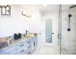 DISCOVER THE EPITOME OF LUXURY LIVING AT 406 THOMPSON AVE, NESTLED IN THE PRESTIGIOUS KINGSBRIDGE NEIGHBORHOOD OF AMHERSTBURG. THIS EXQUISITE TWO-STOREY HOME BOASTS 3+2 BEDROOMS AND 5 FULL BATHROOMS, INCLUDING 3 LUXURIOUS ENSUITES. ENJOY THE CONVENIENCE OF MAINTENANCE-FREE LIVING AND A BEAUTIFULLY FINISHED BASEMENT THAT'S HAS A ROUGHED IN SECOND KITCHEN. INDULGE IN THE FINEST DETAILS THROUGHOUT, FINDING HIGH-END FINISHES AT EVERY TURN, INCLUDING A STRIKING GLASS-PANEL WALL TO A LARGER-THAN-LIFE CHANDELIER AND A GIGANTIC ISLAND THAT IS FINISHED WITH LEATHERED GRANITE. THE CHEF-INSPIRED KITCHEN SHOWCASES HIGH-END APPLIANCES SUCH AS A 6-BURNER GAS STOVE, DOUBLE REFRIGERATOR, AND A FORNO WINE CELLAR, MAKING IT AN IDEAL SETTING FOR HOSTING GATHERINGS. (id:50886)