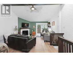 PRICE REFLECTS A SEASONAL LEASE AMOUNT. This beautifully updated two-bedroom, two-bathroom condominium is ideally located just a short drive from local beaches, exceptional hiking trails, Blue Mountain, and downtown Collingwood. Thoughtfully designed with a reverse floorplan, the unit features a spacious primary bedroom complete with a four-piece ensuite bathroom. An additional bedroom and bathroom are conveniently situated on the main level. The upper floor showcases a bright, open-concept kitchen, living, and dining area, highlighted by cathedral ceilings and access to a large private deck. This unit has been completely updated from top to bottom, boasting engineered hardwood flooring throughout, as well as modernized bathrooms and a kitchen with ample cupboard space. A must-see to truly appreciate! No smoking and no pets allowed. Fireplace is non-operational. All utilities are in addition to the rent. Also available for annual lease at $2,200/month. Also listed FOR SALE MLS S12401206. (id:50886)