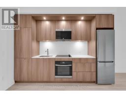 Beautiful and functional one-bedroom plus den suite at The Westerly 2, showcasing light, modern finishes and a bright open layout. The contemporary kitchen features warm wood cabinetry, under-cabinet lighting, quartz countertops, a built-in cooktop, oven, and full-size stainless-steel fridge. The spacious living and dining area opens to a large private balcony with a serene courtyard view. A separate den offers an ideal work-from-home or study space. The bedroom features floor-to-ceiling windows and a large closet, while the sleek four-piece bathroom and in-suite laundry complete this well-designed suite. Residents of The Westerly 2 enjoy access to premium amenities including a fully equipped fitness centre, yoga studio, co-working lounge, party and entertainment room, outdoor terrace with BBQ and dining areas, 24-hour concierge, and visitor parking. Conveniently located steps to Islington Subway Station, Bloor Street shops and cafés, and minutes to Sherway Gardens, parks, and major highways with easy access to Downtown Toronto. (id:50886)