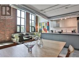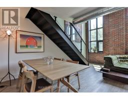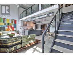 $1,060.38 MonthlySomething truly special at Wonder Condos - a sun-filled heritage loft with ideal west exposure, dramatic 17-foot ceilings, and original character throughout. Nearly 1,500 square feet of exceptional living space framed by soaring windows with integrated blinds, warm red brick accents, and a flexible floorplan accommodating up to three bedrooms. The upper loft is devoted to a serene primary suite with a generous walk-in closet and spa-like ensuite with dual vanities. A sprawling chefs kitchen anchors the main level, featuring an oversized island, abundant storage, premium appliances and induction range. Currently, the main floor includes a large office with custom built-ins and walk-in closet (easily reverted to a bedroom) plus a comfortable den, once a third bedroom. A full bathroom serves this level. Life at Wonder Condos offers a dynamic blend of history and modern convenience, with vibrant amenities including a rooftop terrace with BBQs and fire pits, co-working space, dog-wash station, well-equipped gym, and kids party room. Steps to the shops and dining of Queen East, and moments to Ashbridges Bay, Lake Ontario, and easy downtown/DVP access. An evolving neighbourhood within easy walking and cycling distance to the new Port Lands, Biidaasige Park, and the upcoming Ontario Line just blocks away. Exceptional space in a remarkable community. (id:50886)