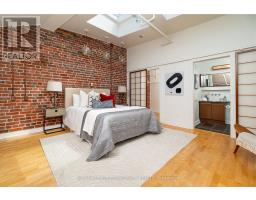 $1,183.38 MonthlyWelcome to Unit 409 at the historic St. Lawrence Market Lofts, offering a rare opportunity to own a truly one-of-a-kind space in one of Toronto's most vibrant and desirable neighbourhoods. This stylish and functional 1-bedroom + den loft showcases soaring ceilings with skylights, exposed brick and beam, and an open-concept layout designed for both comfort and entertaining. The spacious primary suite is a private retreat complete with its own bathroom, while the additional powder room and versatile den provide convenience and flexibility. Set within an intimate, boutique building full of character, residents enjoy a unique sense of privacy and charm while being just steps from the world-famous St. Lawrence Market, shops, cafes, and transit. This loft perfectly blends authentic urban character with modern living. (id:50886)