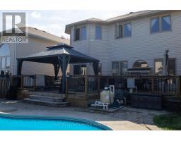 Lanthorn Realty is proud to present 409 Cavendish Crescent. This 2350sqft beautifully maintained and updated two storey gem is nestled in one of Kingston's highly sought after Northwest City neighbourhoods (King's Landing). The front curb appeal stuns, and continues throughout to the luxury backyard where you'll relax with family & friends in your gorgeous heated inground pool and covered hot tub. The grand two storey entrance welcomes you into the foyer with a curved staircase. Enjoy the open concept chef's kitchen with granite countertops &stainless steel appliances. The main floor features formal dining, a powder room, a main floor laundry & living spaces. The upstairs welcomes with a gorgeous sun soaked office/playroom, master bedroom with ensuite & two generous bedrooms with one full bath. The fully finished basement has a fourth bathroom rough-in and is ready for your customization. This quiet family friendly neighbourhood has parks & amenities galore and is ready for you to call home. (id:50886)
