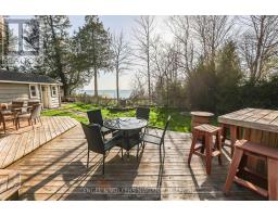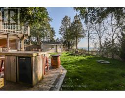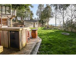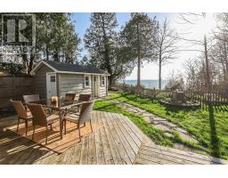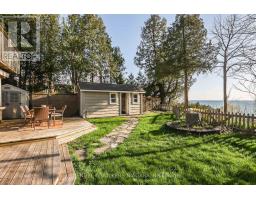 LAKEVIEW 4 season cottage with a 3 season sunroom, adorable board-and-batten bunkie, fenced yard and loads of privacy! Take in the magnificent Lake Huron views and sunsets from any of the 4 ground level seating areas or the upper level deck. Lovely community on the outskirts of Goderich and only minutes to Bayfield. Fantastic outdoor cooking area with island and bar fridge. Cosy around the gas fireplace which heats cottage sufficiently in winter. Enjoy the sunroom on a rainy evening or a cool morning. Take your morning coffee or your evening wine out of the bedroom to the upper level deck. Super cute bunkie with 2 built-in bunk beds and separate storage area. 4 piece bathroom with newer window, toilet, and flooring. Several updates make this cottage move-in ready. Roof 2017, Bunkie with separate hydro line 2017, front screen door, toilet, bathroom window and flooring, pine shiplap accent livingroom walls, curbstop and yard hydrant 2019, new front deck 2020. New flooring 2023. Meander through the hosta garden beside the driveway. 2 sheds for ample storage. Access to lake is via community path. 2 bedrooms upstairs, pullout couch in living room and 4 single beds in bunkie, so the cottage can accommodate 10 for sleeping. Affordable utility costs. Water included in association fee. Parking for 3 vehicles in driveway. A true gem! (id:50886)