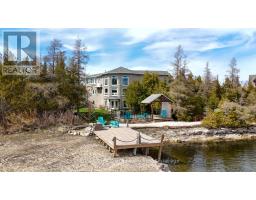 Experience the ultimate in turnkey luxury living in this 3-story, 3000+ sq ft waterfront home on beautiful Boyds Harbour. The attention to detail in this home is evident, from the beautiful stone exterior to the large windows that showcase the stunning waterfront and allow light to cascade in. With its spacious layout and amenities, this home offers the perfect retreat for relaxation and enjoyment. The double door entry sets the tone with its large family room, cozy fireplace and bright interior, providing a welcoming atmosphere for gatherings. Indulge and rejuvenate in your own personal sauna and hot tub room and let the cares melt away. Climb the grand staircase to the main floor and step into the stylish and inviting open plan living room, dining room and stunning kitchen. Also, on the main floor you will find two beautiful bedrooms each with a 3-piece bath providing both comfort and privacy for your family and friends. The primary suite occupying the entire upper level offers a large spacious bedroom overlooking the great room below and a luxurious ensuite with marble flooring, double sink vanity, steam shower, and a gorgeous tub perfect for a soothing soak. There is also a sunroom which captures the lake views and offers a place to sit and enjoy a glass of wine. With its waterfront seating area and direct access to Lake Huron via a private dock on a shared boating water well, you can easily take advantage of waterfront activities and breathtaking views. For added parking there is a carport with attached workshop to putter away the hours. The central location on the Peninsula, provides the perfect balance of seclusion and accessibility to amenities with Lion's Head a short 15 minute drive away. Escape the hustle and bustle of everyday life and live out your dreams here on Boyds Harbour Loop. (id:50886)