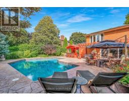 Welcome home to 41 Denver Crescent a Henry Farm Ravine Oasis. Here is your unique opportunity to live on one of Henry Farms most prestigious and tranquil streets. This stunning 4+1 bedroom home is ideal for anyone seeking a serene escape within the city. The true showstopper is the breathtaking, sun-drenched, south-facing, resort-like backyard. Backing onto a gorgeous ravine, the mature trees and lush gardens create the perfect backdrop to the Gunite pool (solar heated), hot tub, pergola, and expansive stone patio - big enough for an extra-large dining table, casual seating area, and loungers! A fully equipped cabana with a wet bar, fridge, gas BBQ, and TV makes entertaining effortless. Every inch of this beautifully landscaped backyard has been thoughtfully designed for relaxation, luxury, and enjoyment. By night, the landscape glows with thoughtfully placed lighting, turning every evening into something magical. Behind the pool is a hidden lower-level grassy area that is perfect for a playset, soccer practice, or even a putting green! The open concept main floor features hardwood throughout, an updated kitchen with quartz counters, breakfast bar, and tons of storage! The elegant living room/dining area seamlessly accommodates gatherings of all sizes. Upstairs, you'll find three bedrooms with lots of closet space. The basement is fully finished with a rec room, cozy bedroom with a fireplace, and lots of storage. On ground level, you'll find a large office (or bedroom) with built-ins and a 28-ft family room with a walk-out to your own private backyard oasis. Double car garage plus parking for 4 cars in the driveway. Henry Farm is one of the most engaged communities you'll find in the city. Community newsletter, events, local school, tennis club, church, neighbourhood watch, all make this community unique. Just steps to transit, GO train, subway, North York General Hospital, Fairview Mall, grocery stores, and the Don Valley trails. Minutes to both 401 and DVP. (id:50886)