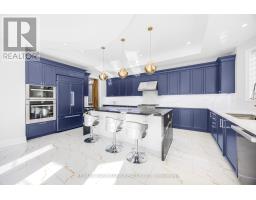 This stunning residence offers approximately 5,000 sq. ft. of luxurious living space with a rare tandem 3-car garage. The grand main floor features a soaring 21-ft hallway, elegant hardwood flooring throughout, and brand-new hardwood on the second level. Designed with 11-ft coffered ceilings, the home boasts a chef-inspired kitchen with a striking two-tone quartz waterfall island, a spacious formal dining room, a bright living room, a cozy family room with a gas fireplace, laundry on main, and a stylish powder room. Upstairs, 10-ft ceilings enhance the sense of space. Four generously sized bedrooms each include a private ensuite and walk-in closet, complemented by a media room that can easily serve as a fifth bedroom. The spa-like master retreat showcases a sun-filled half-circle sitting area, walk-in closet, and a luxurious ensuite with frameless glass showers.6 Burner Gas Miele Stove, Miele Oven, Fridge, Miele Dishwasher, Front Load Washer And Dryer. Custom Window Coverings And Luxury Light Fixtures, Security System, Interlocking Brick Drive. (id:50886)