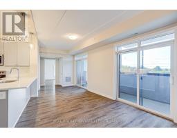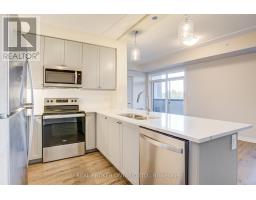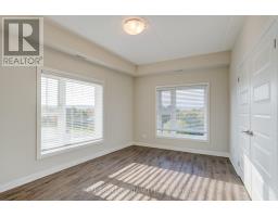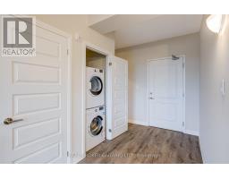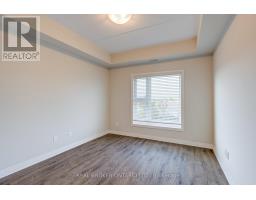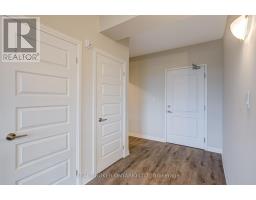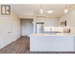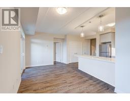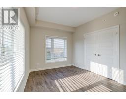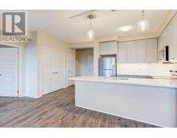 Welcome to this bright and spacious 2+1 bedroom, 2 full bath condo in Milton's desirable Willmont community. Spanning 1,127 sq ft, this open-concept suite features 9' ceilings, wide-plank luxury vinyl flooring, and abundant natural light throughout. The modern kitchen showcases quartz countertops, extended-height cabinetry, under-cabinet lighting, stylish pendant lights over the breakfast bar, and stainless-steel appliances including a microwave range hood. The living and dining area offers a seamless walkout through double sliding patio doors to a private balcony-perfect for relaxing or entertaining. The primary bedroom includes a walk-in closet and 3-piece ensuite with glass shower, while the den provides an ideal space for a home office or guest room. Includes one underground parking space and locker. Enjoy resort-style amenities: gym, party room, landscaped garden, fenced pet area, bike storage, and car wash station. Steps to Milton District Hospital, Milton Sports Centre, parks, shops, and just minutes to Hwy 401. (id:50886)