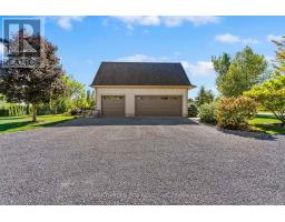 Welcome to 411 Read Road, Niagara on the Lake where timeless charm meets modern convenience in the heart of wine country. This beautifully maintained home, built in 2011, offers over 2,400 sq ft of thoughtfully designed living space on a 1.2-acre lot, combining the peace of country living with the benefits of city water and a high end septic system. Step onto the large covered front porch, perfect for morning coffee or sunset views, and enter a grand foyer with an elegant sliding door concealing a functional back hall. Here you'll find a spacious mudroom, laundry area, and access to the oversized triple garage. At the heart of the home is a warm and inviting living room featuring a cozy gas fireplace and two sets of garden doors that open to the back deck, offering seamless indoor-outdoor living. The dinette area easily accommodates a large table, flowing into a gorgeous kitchen with generous cabinetry, brand-new quartz countertops, and a stunning backsplash perfect for entertaining or everyday living. A neatly tucked-away office nook provides a quiet space to work or study. The main floor primary suite is a private retreat, featuring his and hers walk-through closets and a luxurious 4-piece ensuite with a soaker tub, corner shower, and stylish vanity. Upstairs, two massive bedrooms each boast walk-in closets and share a 4-piece ensuite, ideal for family or guests. The finished basement offers comfortable additional living space with in-floor heating, 9 ft ceilings, and a fourth bedroom. Outside, enjoy unobstructed orchard views, a huge deck, hot tub, and ample yard space perfect for kids, entertaining, or even adding a pool. A bonus barn offers dry storage, with a newer steel roof. Above the garage, theres potential for an in-law suite or studio, giving you options for extended family or additional income. If you're dreaming of a country lifestyle without compromising on modern comforts, now is the time to make this Your Niagara Home. (id:50886)