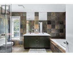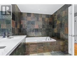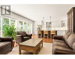 Tucked Away in the Trees of Desirable SE Oakville Nestled on a private, tree-lined lot in sought-after Southeast Oakville, new construction in 2000 this beautifully updated 4+1 bedroom, 4+1 bathroom home offers modern elegance and exceptional functionality. The open-concept main floor showcases a stunning chefs kitchen (2018) with professional-grade appliances, Quartzite countertops and island, and custom cabinetry, all open to a spacious great room with floor-to-ceiling windows, a gas fireplace, and porcelain tile surround. Additional main-level features include a formal dining room and a private den perfect for working from home. Upstairs, the luxurious primary suite boasts a 5-piece ensuite and convenient upper-level laundry, complemented by two additional full baths. The finished lower level offers a generous rec room, a bedroom with its own ensuite bath ideal for guests or in-laws and plenty of storage. Step outside to a private backyard oasis complete with a deck featuring sleek glass handrails, lush landscaping, and a hot tub for year-round relaxation. Updates include- Roof 2019, Furnace 2025, AC 2024, 3 updated baths on 2nd level, new flooring on Ll plus freshly painted thru most of home, new decking, handrails and gate 2025. A rare blend of privacy, luxury, and location this home is truly move-in ready. (id:50886)