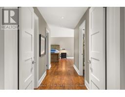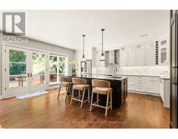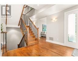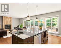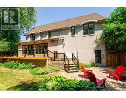 Tucked Away in the Trees of Desirable SE Oakville Nestled on a private, tree-lined lot in sought-after Southeast Oakville, new construction in 2000 this beautifully updated 4+1 bedroom, 4+1 bathroom home offers modern elegance and exceptional functionality. The open-concept main floor showcases a stunning chefs kitchen (2018) with professional-grade appliances, Quartzite countertops and island, and custom cabinetry, all open to a spacious great room with floor-to-ceiling windows, a gas fireplace, and porcelain tile surround. Additional main-level features include a formal dining room and a private den perfect for working from home. Upstairs, the luxurious primary suite boasts a 5-piece ensuite and convenient upper-level laundry, complemented by two additional full baths. The finished lower level offers a generous rec room, a bedroom with its own ensuite bath ideal for guests or in-laws and plenty of storage. Step outside to a private backyard oasis complete with a deck featuring sleek glass handrails, lush landscaping, and a hot tub for year-round relaxation. Updates include- Roof 2019, Furnace 2025, AC 2024, 3 updated baths on 2nd level, new flooring on Ll plus freshly painted thru most of home, new decking, handrails and gate 2025. A rare blend of privacy, luxury, and location this home is truly move-in ready. (id:50886)