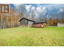 Enjoy the best of country living with modern updates in a beautiful natural setting. Tucked on the edge of Holstein on over 1 acre, this well updated raised bungalow offers the perfect blend of privacy, charm, and functionality. Enjoy the long, tree-lined driveway as you approach the home, surrounded by nature and country tranquility. The recent exterior upgrades such as new siding, soffit, fascia, eavestroughs and rear deck all give this home a fresh, modern look that's sure to impress. Step inside to the spacious foyer which is ideal for welcoming friends and family. The interior has been thoughtfully updated since 2024 with new flooring, fresh paint, modern lighting, updated kitchen hardware, and more. The open-concept main floor features a unique offset wall design that makes this home stand out from cookie-cutter layouts of new builds. The kitchen offers generous counter space, a large island, and easy flow into the dining and living areas. The modern lighting allows for a dimmed evening lighting mode for movie night, relaxing with friends or for the night when you need a glass of water. The primary bedroom includes ensuite privileges to the main bath, while a large second bedroom and convenient main-floor laundry add to the home's functionality. Downstairs, discover a large family room with wood stove that is perfect for relaxing on cold winter nights. Two more large bedrooms, a second bathroom, and bonus storage under the foyer provide flexibility of use. The large basement windows with this design make it feel more like the main floor level. Step outside to enjoy the back deck overlooking the large yard for gardening, fun, or simply enjoying the fresh air. It features an oversized single-car garage, large shed/workshop, and the lot layout offers potential to add a shop or extend the garage. Bordered by a scenic maple forest, this property offers the perfect balance of seclusion and accessibility just minutes to Mount Forest. (id:50886)