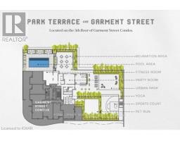 Welcome to 108 Garment Street in the heart of Downtown Kitchener! This modern and well-kept 1-bedroom + den suite features an open-concept layout with 9-ft ceilings, engineered flooring, and floor-to-ceiling windows that bring in amazing natural light. The kitchen offers stainless steel appliances and granite counters, and the den is the ideal size for a home office. Enjoy a full-sized balcony and the convenience of 1 parking space. Residents have access to outstanding amenities including a rooftop pool and BBQ terrace, fitness centre, yoga studio, sports court, pet run, and an entertainment room with a catering kitchen. Located in Kitchener's Innovation District, you're steps from Google, Deloitte, Communitech, the School of Pharmacy, Victoria Park, restaurants, cafés and shops. Transit is unbeatable with the ION LRT, GO Train and VIA all nearby. A stylish, well-located unit in one of the city's most sought-after buildings, available for January 1st occupancy. (id:50886)