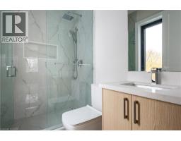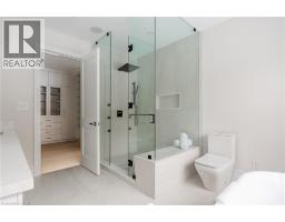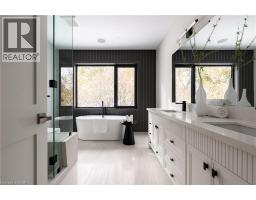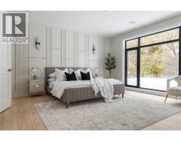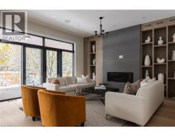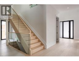 Brand new, never lived-in custom home in Burlington’s desirable Shoreacres community. Set on a tree-lined street and backing onto a park, this residence delivers more than 5,600 square feet of beautifully finished living space and a design defined by craftsmanship and natural light. Enter into the grand foyer with 20' ceiling, 10-inch baseboards, and 7½-inch engineered floors throughout the main level, complemented by in-ceiling, triple pane energy star aluminum windows, in-ceiling speakers and radiant in-floor heating. A front-facing office with 12-foot ceiling, feature wall, and two-sided fireplace offers a refined space to work or study. The open-concept great room centres on a porcelain-clad gas fireplace flanked by custom built-ins, flowing seamlessly into a bright white kitchen featuring JennAir appliances, two sinks, a waterfall quartz island, and matching quartz backsplash. Sliding glass doors open to a covered porch with built-in barbecue overlooking the park—a perfect setting for year-round entertaining. Upstairs, four spacious bedrooms each enjoy their own ensuite. The primary suite includes a walkout terrace, feature wall, and spa-like ensuite with freestanding Mirolin tub, rain and wand shower, and dual vanity. The finished lower level impresses with radiant in-floor heating, a generous walk-up to the backyard, gym, fifth bedroom, steam shower bath, wet bar, theatre room, and recreation area. A rare combination of architectural quality, modern comfort, and family function—all within an exceptional school catchment. Tarion warranty. (id:50886)
