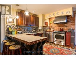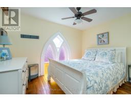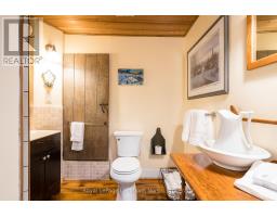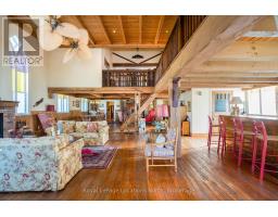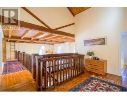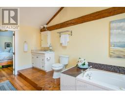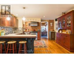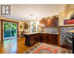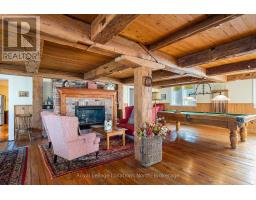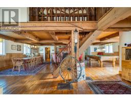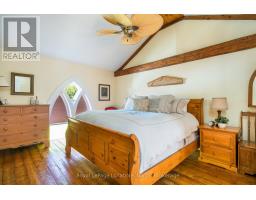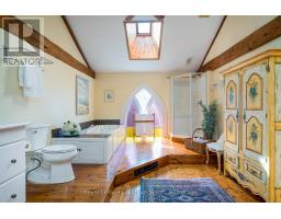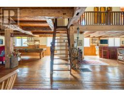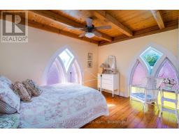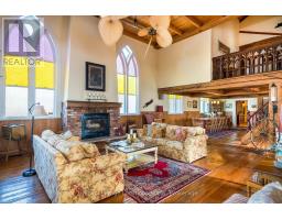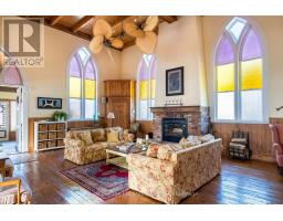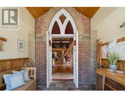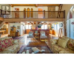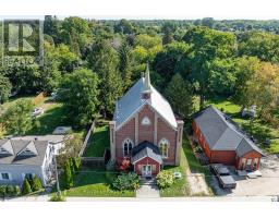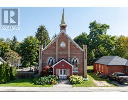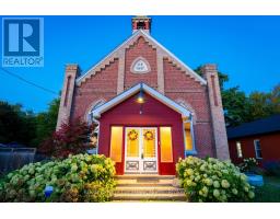 When you step inside this unique, renovated 1897 church, you can't help but imagine the fabulous holidays your family and friends would enjoy here. On the main street of the charming village of Nottawa, this is a home meant for gathering. This rare opportunity is absolutely full of thoughtful touches and decor lavished on it by its current owners, and all those touches are included in the sale. Furnishings, linens, rugs, art, lamps, antiques, even the dishes, all come with the house so moving in will be easy. Your family will enjoy the restful and restorative atmosphere of the main floor with the soft light of stained glass. The sprawling living space under post and beam cathedral ceilings has a chalet like feel. It features a primary seating area in front of a wood burning fireplace with a wonderful long and welcoming bar for entertaining. The bar itself was recovered from an old general store. An adjoining space houses another seating area in front of a gas fireplace and a large billiards table. The dining table seats 14 so no card tables will be necessary. Each space is wide open yet beautifully defined with a combination of historic details and new improvements. You will have room for all your guests in the five upstairs bedrooms, all stylishly decorated and all enjoying the comforting glow of stained glass windows.The main floor den has a pull out sofa bed and an ensuite bathroom for additional sleeping quarters. It is a home to wander in, explore, and bask in its warmth and coziness. Outside, a large backyard deck allows space for an oversized bbq and an enormous hot tub, all under a beautiful canopy of mature trees. Multiple sheds for storage and potting make maintenance easy -- and even the garden equipment is included. (id:50886)