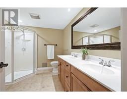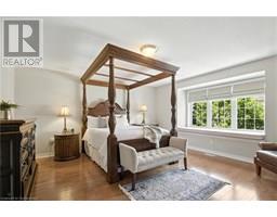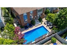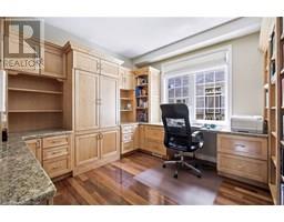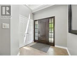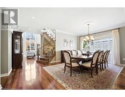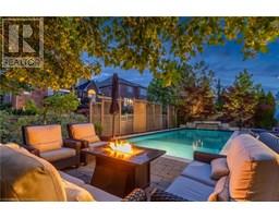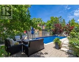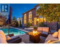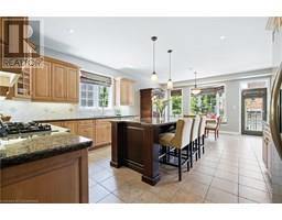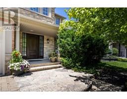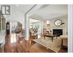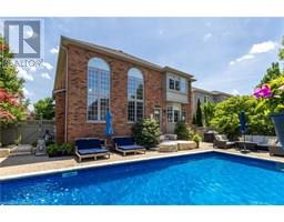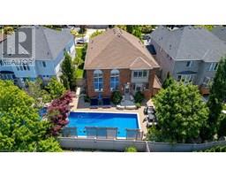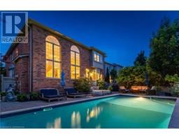 Exceptional 2-storey home with over 4,900 sq ft of carpet-free, finished living space, showcasing thoughtful design and meticulous attention to detail. Impressive stone and brick exterior, interlocking double driveway, patios, and elegant light scaping. Curb appeal is outstanding. Welcoming two-storey foyer flooded with natural light, leading to a spacious and open main floor layout. Elegant living room features a gas fireplace and crown moulding, while the formal dining room accommodates large gatherings—ideal for entertaining. Grand staircase with Juliet balcony overlooks the impressive two-storey family room, with Palladian windows and a gas fireplace. The gourmet kitchen is a chef’s dream, featuring a large island, granite countertops, marble backsplash, gas cooktop, double wall ovens, wine fridge, and abundant cabinetry. The bright breakfast area, with bay window and built-in bench seating, offers views of the private backyard patio. A main floor office with custom built-ins, powder room, and laundry room with garage access complete the level. A second staircase off the kitchen adds convenience and ease of flow. Upstairs, the luxurious principal suite includes a 5-piece ensuite with dual vanities, a soaker tub, separate shower, and a large walk-in closet. The second bedroom features a 4-piece ensuite. Third and fourth bedrooms share a convenient Jack-and-Jill bathroom. Bright, spacious, fully finished lower level has oversized windows, a large rec room with fireplace, fifth bedroom with ensuite privilege to a 4-piece bath, an exercise room, and a utility/storage area. Private backyard oasis with heated saltwater inground pool and water feature includes a new liner and heater. Expansive patio offers both a lounging area and a cozy sitting area. Located on a quiet crescent, this exceptional home is just minutes from top-rated schools, parks, trails, shopping, dining, and access to Hwy 407. Truly a rare find in one of Burlington’s most desirable neighbourhoods. (id:50886)