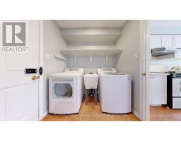 Rarely offered 2-storey end-unit townhouse with double garage and fully fenced oversized backyard, offering a total living area of approx. 2,123 sq. ft.. Located in a quiet executive enclave in prestigious Glen Abbey with private road access, a professionally landscaped flagstone patio, and a double-sized driveway. The main floor features an open-concept living/dining area with hardwood floorings and large windows and a modern kitchen with ceramic floors, stainless steel appliances, a breakfast area, and a walk-out to the backyard. Also includes a 2-piece powder room. A laundry room is located on the main floor, with ceramic floorings and garage access. Upstairs offers three bright bedrooms with hardwood floorings and large windows. The primary bedroom features French doors, a large walk-in closet, and a 6-piece ensuite with double sinks. The second and third bedrooms offer large closets, and a 4-piece bathroom serves the level. An additional open-concept hallway/study/office area adds function and light. The finished basement offers a cozy gas fireplace, a 4-piece bathroom, enclosed storage, and versatile space for a family room, gym, or home office. Steps to public transit, scenic trails, parks, and top-ranked schools, with easy access to the QEW, GO Station, shopping, and recreation centres, a rare opportunity in one of Oakville's most family-friendly communities. Ready to Move-in (id:50886)