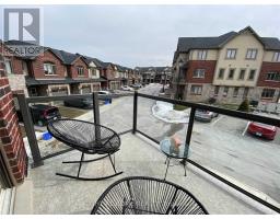 Welcome to this stylish 2+1 bedroom, 2-bath end-unit townhouse in a highly sought-after Ancaster location! Perfectly situated near major highways, this home offers convenience while being nestled in a quiet, family-friendly community. Enjoy 9-foot ceilings and a flexible main floor space ideal for a home office, playroom, or personal gym. The modern kitchen boasts quartz countertops, stainless steel appliances, a breakfast bar, and a bright dining area with a walk-out to a private balcony perfect for morning coffee or evening downtime. Premium flooring flows throughout the main and second levels, while the third floor provides cozy, carpeted bedrooms for added comfort. Property Pictures are virtually staged as the property is tenanted. (id:50886)