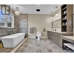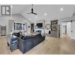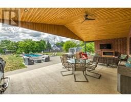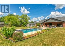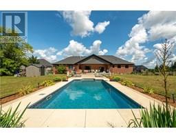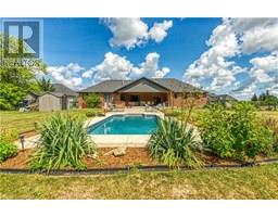 Beautifully presented, Custom Built 5 bedroom, 3 bathroom Home located on sought after1.08 acre lot in the desired location of Empire Estates with meticulous attention to detail throughout. Incredible curb appeal with brick & stone exterior, triple car garage, backyard oasis complete with extensive exposed aggregate concrete surrounding luxurious ingroundpool & oversized covered porch. The exquisitely finished, open concept interior offers approx. 3140sq ft of distinguished M/F living space highlighted by 9' ceilings throughout, custom kitchen w/oversized island, w/i pantry, quartz counters & S/S appliances, bright living room w/fireplace, b/i shelving & cathedral ceiling, formal dining area, welcoming foyer,5 spacious MF bedrooms (5th bed currently being used as a office), featuring luxurious primary suite with WI closet & stunning 5pc ensuite, oversized MF laundry with custom cabinetry. The lower level is awaiting your personal finishing touches and includes ample storage & direct access to garage. Situated perfectly on the lot to include potential detached out building/shop. Conveniently located 15 min. south of Hamilton - central to Binbrook, Caledonia & York. Rarely do custom homes such as this come available! (id:50886)