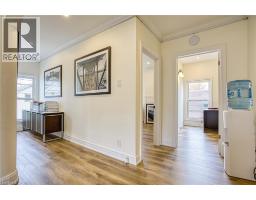 Welcome to 42 Ontario Street, a standout property in the heart of downtown Grimsby—perfect for your next office headquarters. This character-filled two-storey home offers 12 private offices, 4 washrooms, a welcoming reception area, a full kitchen with a shared open-concept lunchroom, and more than 2,800 sq. ft. of versatile space. Historic charm meets modern function with rich hardwood floors, a grand Victorian staircase, intricate wood trim, and striking tin ceilings in the main foyer. An outdoor patio provides the ideal spot for lunch breaks or team gatherings. The generous lot features 11 on-site parking spots plus ample street parking, and you’re just steps from restaurants, banks, shops, and quick highway access. Schedule your private showing today and discover how this remarkable property can elevate your business. (id:50886)
