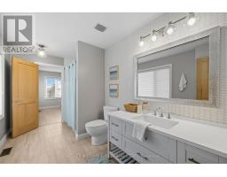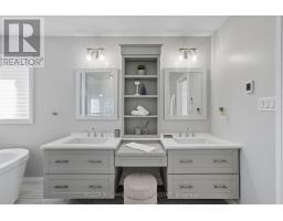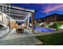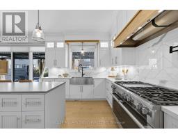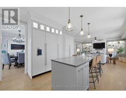 Modern & customized 4-bedroom, 5-bathroom home offers over 3,000 sq ft of finished living space designed for entertaining and everyday luxury just steps from the waterfront in Port Darlington. The main floor features 9-foot ceilings, an open-concept kitchen and dining area with premium finishes, a built-in gas range, quartz counters, and a walkout to a private backyard retreat. The living and dining spaces are anchored by an elegant electric fireplace and oversized windows that fill the home with natural light. Upstairs, four spacious bedrooms provide comfort for the whole family, including a serene primary suite with a walk-in closet and spa-inspired ensuite with heated floors. The finished lower level includes a wine cellar (~86 s.f.), wet bar, and rec space perfect for gatherings or quiet evenings in. Situated on a 61.58 ft frontage corner lot, the property offers curb appeal and added privacy. The resort-like backyard is an entertainers dream: a heated saltwater pool with waterfalls, two outdoor gas fireplaces, a built-in BBQ, and a Sunlouvre pergola for year-round enjoyment. The attached 2-car garage with new doors (2024) and driveway parking complete this impressive home. (id:50886)