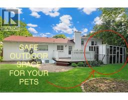 Exclusive, sought-after original Cherry Heights location in a prestigious cul-de-sac subdivision backing onto orchards with no through traffic. Ideal for families with pets, this property features a Lrg, self-contained outdoor cattery courtyard with 2 levels, 2 entrances, & a partially covered steel roof-providing safe protection for all pets and pet parents who prefer crating options. Fantastic value, as a similar home nearby recently sold well above this list price. Some interior images are virtually staged to reflect modern décor rather than the owner's traditional or antique style. This unique Hacienda-style house, circa 1973, sits on a Lrg premium 65x134 ft lot with great curb appeal, archways, custom wrought iron gates, and a 6-car driveway resurfaced 2024. Features extensive interlock brick walkways, a Lrg tandem 2 car garage ideal for a workshop. Within walking distance to town and shopping in Niagara's wine country. The southern exposure offers a spacious deck overlooking a beautiful, mature, private, fenced, pool-sized yard surrounded by cedars in a park-like setting, perfect for entertaining. A Lrg custom shed/change house with authentic Mexican roof tiles adds charm. The home has four levels with Lrg principal rms, a generous L-shaped liv/din rm, a Lrg kitchen with space for an island, and a cozy sitting area in the spacious primary bedrm. It includes 5-piece and 3-piece baths, a family rm with a wood-burning fireplace, and a bright office/3rd bedroom. There's ample closet space throughout. The walk-out basement with a private entrance allows for a nanny suite, or extra living space & includes a cold cellar vented to the garage. Recent upgrades include a new A/C unit, black & white marble-look floor tiles and kitchen countertops, exterior painting (2024), upgraded attic insulation, 30-year roof shingles (2018), and gutter guards for easy maintenance (2023). Offering privacy, character, & charm in a prime location-make this home your own! (id:50886)