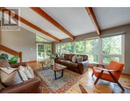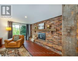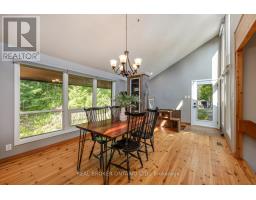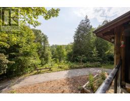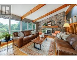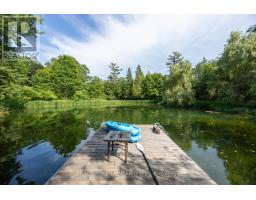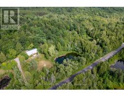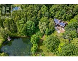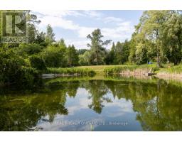 Welcome to a hidden gem in Rural Clarington. Approx. 40 acres of breathtaking privacy nestled into a wooded hillside, overlooking two spring-fed ponds. This one-of-a-kind retreat offers the peace of country living and the beauty of nature at every turn. Designed to embrace its surroundings, the main living space features an updated kitchen with butternut cabinetry, granite counters, tile backsplash, marmoleum flooring, stainless steel appliances, and an adjacent walk-in pantry. The dining room boasts a soaring, cathedral ceiling and overlooks a sunken living room with a wood-burning fireplace and walk-out to a sprawling deck, perfect for taking in the tranquil views. A 4-pc bathroom offers spa-like comfort with a sunken soaker tub and walk-in shower. Both bedrooms on this level feature their own private balcony overlooking the pond. The lower level, with its own separate entrance and driveway, is ideal for guests, in-laws, or extended family. It includes a bedroom with a large picture window, a family room with exposed beams, walk-out to the yard, and an electric fireplace with brick surround. A 2-pc bath, laundry area, and a peaceful wellness space featuring a dry sauna, Japanese soaking tub, and shower complete the lower level. Three driveways offer flexible access, two to the home, and a third leading to an impressive approx. 60'x40' detached garage/workshop fed by its own drilled well has a wet bar and lounge area. Outside, two spring-fed ponds with private docks invite you to swim, paddle, or simply soak in the serenity. Surrounded by rolling hills, meadows, and mature trees, this is more than a home it's a private retreat where peace and possibility live in perfect balance. (id:50886)