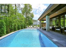 With a stunning backyard, 5,196 sq ft of above ground living, and quality construction built by Gatestone Homes, this home is truly the total package. Stone, wood, and striking Anderson windows have been eloquently incorporated on the exterior of the home, lending to the superb curb appeal. The thoughtful design fuses modern style with timeless elegance. The foyer of the home feels as though you are entering a luxury hotel, with a stunning floating staircase and a custom hanging light feature that is a piece of art in itself! The soaring two-storey foyer is flooded with natural light from oversized windows, creating a bright and welcoming space. A custom wooden piece subtly divides the foyer from the traditional dining room that is complete with a temperature-controlled wine room and glass doors that invite you to enjoy the expansive rear deck. The heart of the home is the open concept kitchen-family-dining space that is surrounded by windows and grounded by a beautiful gas fireplace. With an oversized island there is no shortage of space for you and your guests. Adjacent to the kitchen is a conveniently located powder room as well as a laundry/mudroom that can be concealed by a pocket door. The primary suite is a true oasis. With double door entry, a gas fireplace, and five-piece ensuite, no detail was overlooked. The three additional bedrooms all have ensuite access and walk-in closets. Completing this level is a laundry room and study area with built-in desk space. The 2,712 sq ft lower-level walk-up will not disappoint. The large recreation space features a built-in projector, billiards space, and wet bar. A home gym and two additional bedrooms as well as playroom/second home office finish off this space. Lush mature trees combined with meticulous landscaping will lure you to the rear yard. With approx. 1800 sq ft of outside living space, a gunite pool, and cabana, this backyard checks all the boxes! Enjoy the beautiful summer weather in this retreat-like home! (id:50886)