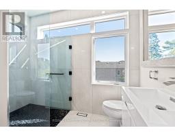 Stunning contemporary luxury home showcasing top-of-the-line custom design and high-end finishes throughout. This residence features wide-plank hardwood floors, 12ft ceilings, and an open-concept layout that seamlessly blends the kitchen, dining, and family room areas. The chefs kitchen is equipped with a custom design, luxury appliances, and an impressive 10ft island, with a walkout to a spacious deck and private backyard, perfect for entertaining. Elegant skylights and a striking two-way gas fireplace add warmth and natural light to the main living areas. The primary suite offers a private balcony, custom walk-in closet with built-ins, and a spa-inspired ensuite bathroom. The lower level is finished with heated polished concrete floors, full walkout, and ample space for recreation or a home gym. Conveniently located near top-rated schools, parks, golf courses, shops, transit, the Lakeshore, and major highways, this home delivers both luxury and lifestyle. (id:50886)