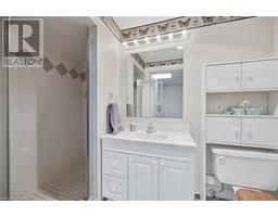 $540.25 MonthlyWelcome to Twenty Place !! The much sought after stress-free, adult life-style community. This well maintained, end unit bungalow features a spacious sun- filled Living Room with corner gas fireplace, breakfast bar, pot lights, coffered ceiling and garden door access to pretty rear yard. Large eat-in kitchen with updated counters, loads of cupboards, a sunny spot in front of the window for your table and chairs and a side counter with glass door cabinetry plus appliances. Updated flooring in Living Room and Kitchen . Generous size Master Bedroom with double closet. Main bath with tub and separate shower. Handy main floor laundry and easy inside access to the garage. Expansive finished lower level provides additional entertaining space or private retreat for guests with rec room, bedroom, 3 piece bath and bonus second laundry room. Also features a lower level den and workshop. There is something for everyone here, with an abundance of amenities. Indoor pool, sauna, gym, library, party room, games room, outdoor games area and so much more. Ideally located near shopping, transit, dining and highways. A great place to call home. (id:50886)