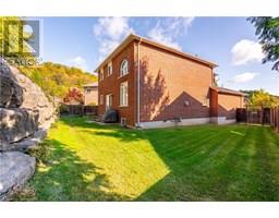 WELCOME TO 43 WOODLAWN COURT, A METICULOUSLY MAINTAINED HOME IN THE HEART OF DUNDAS! Located on a quiet court in one of Dundas’ most sought-after, family-friendly neighbourhoods, this beautifully maintained 2-storey all-brick home offers 2,495 sq ft of living space plus finished basement, lovingly cared for by original owners. Bright & spacious main level w/ 9ft ceilings features formal living rm, dining rm w/ coffered ceiling & inviting family rm w/ gas fireplace. Kitchen offers a functional layout w/ breakfast area overlooking private backyard. Convenient main floor laundry & 2pc bath complete this level. Upstairs, large primary bdrm features a 4pc ensuite & walk-in closet. Two additional generous size bdrms, one w/ walk-out to a balcony w/ stunning views of Dundas Driving Park, perfect spot to enjoy seasonal fireworks & natural beauty & second 4pc bath completes upper floor. The finished basement provides additional living space complete w/ rec rm, storage & rough-in bath. Situated on a 29 x 105 ft pie-shaped lot, enjoy a private back/side yard & double driveway. Recent updates include: roof (2019), A/C (2021), water heater (2023), dishwasher, stove (2025), garage doors, insulated garage, finished basement. An unbeatable location nestled at the base of Sydenham Hill, minutes to downtown Dundas, McMaster University/ Hospital, excellent schools, parks, trails, transit & easy highway access. Rare opportunity to own a home in one of Dundas' most desirable locations. (id:50886)