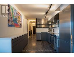 $487 MonthlyWelcome to the epitome of urban sophistication in the heart of Toronto's King West. This sleek and stylish 1 bed + den, 1 bath condo boasts an edgy vibe that perfectly complements its vibrant surroundings. Every inch of this updated space has been meticulously designed to cater to the discerning tastes of city dwellers.The open-concept layout offers seamless flow, ideal for entertaining or enjoying a quiet night in. Your inner chef will rejoice in the recently updated kitchen, featuring S/S appliances and backsplash, quartz countertops, and ample storage space. The open living and dining area bath in natural light and provide terrific space for hosting and entertaining. The bedroom, a refuge from the urban hustle and bustle features custom built-in shelves, closets, PLUS your own projector screen retracting from above the doorway. The perfect retreat to recharge and rejuvenate. Even more impressive is the sprawling, private balcony allowing you to soak in the views of the city skyline. Located in the trendsetting King West neighbourhood, you'll have access to some of the city's best dining, shopping, and entertainment options right at your doorstep. From chic cafes to world-class restaurants, eclectic boutiques to bustling nightlife, everything you need is just steps away. Don't miss your chance to experience the epitome of modern luxury in one ofToronto's most sought-after neighbourhoods! (id:50886)
