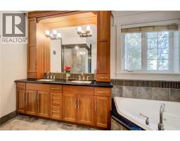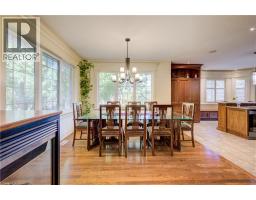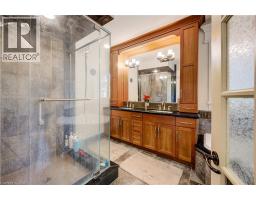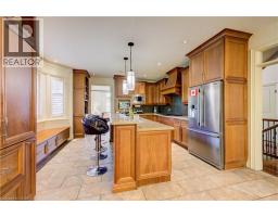 EXECUTIVE HOME BACKING ONTO GREENSPACE. This stately stone-faced home combines elegance and comfort in one of Kitchener’s most sought-after neighbourhoods. The main level features soaring ceilings, hardwood staircase, a versatile front room (ideal as a dining room, office, or den), and a chef’s kitchen with heated floors, custom cabinetry, built-in appliances (including gas cooktop), large island with breakfast bar, and cozy window seat. The kitchen flows to the dining area and a bright family room with a three-sided fireplace and walkout to a covered porch overlooking private, treed greenspace. The primary suite includes a walk-in closet and luxury ensuite with glass shower and jacuzzi tub. A powder room, laundry, and access to the double garage complete the level. Upstairs, the loft offers 2 spacious bedrooms with walk-in closets and a shared 5-pc bath. The fully finished basement has 9ft ceilings, heated floors, large windows, a rec room, 2 additional bedrooms (one with ensuite and walk-in closet), plus another full bath and storage. The landscaped backyard provides privacy with no rear neighbours, perfect for outdoor entertaining. Located between Riveredge and Deer Ridge Golf Clubs with quick access to trails, the Grand River, Hwy 401, and all amenities. Tenant(s) are responsible for heat, hydro, gas, water, tenant insurance, and hot water heater rental. A full application including credit check, credit score, and credit history is required for all applicants. Available immediately. (id:50886)